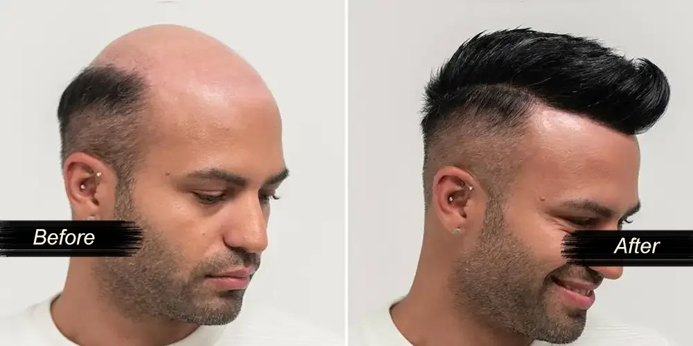 Non-surgical hair replacement uses techniques like bonding, gluing, taping, wigs, patches, or weaving to attach real or synthetic hair to your scalp or existing hair—without any cutting, incisions, or surgery. The process is painless and has zero downtime.